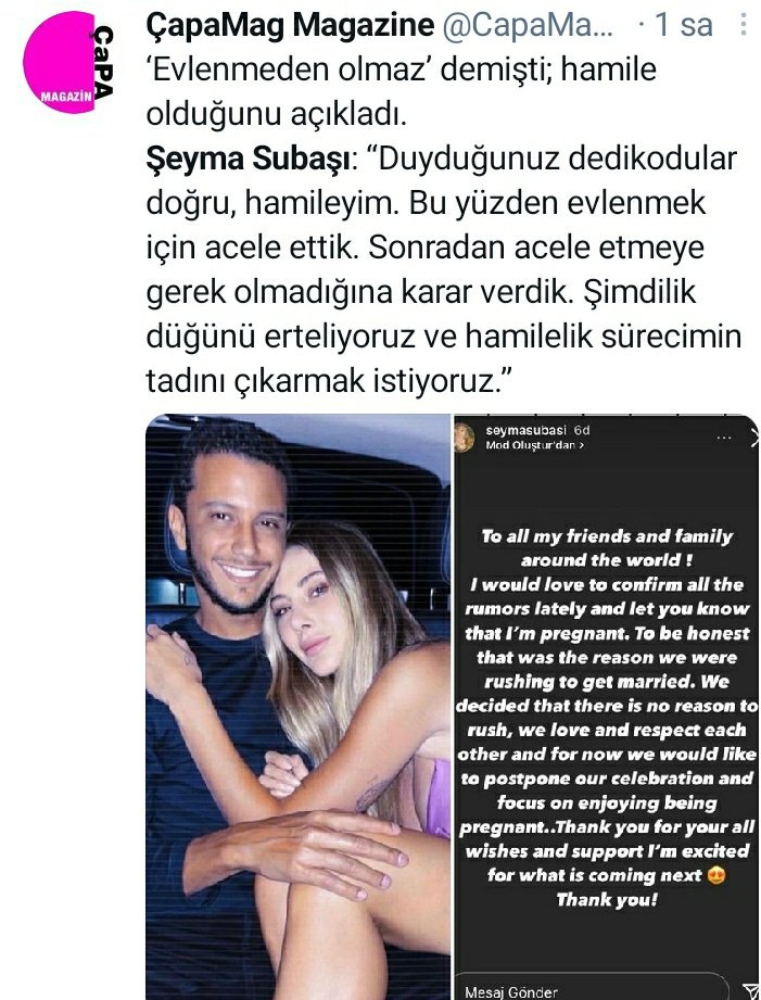 Subaşı tarafından net bir açıklama gelmese de instagram camiasının aylardır konuştuğu bu olay sonunda magazin gazetelerinde yerini aldı.